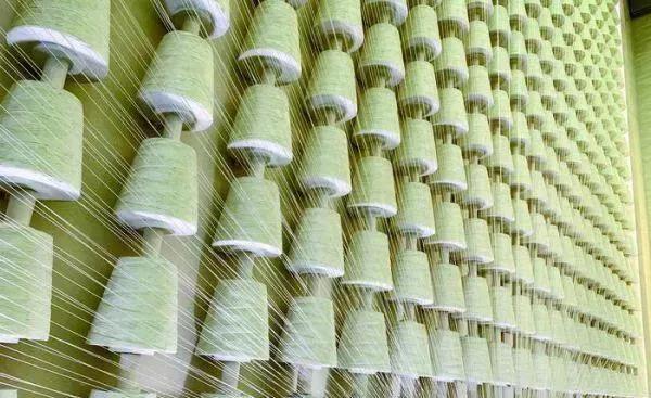 棉朵雕塑后方是千絲墻,由580個仿棉線卷筒制作而成,在燈光照射下光芒四射,震撼之余更是感嘆棉紡工業之精細、人類智慧之閃光。
