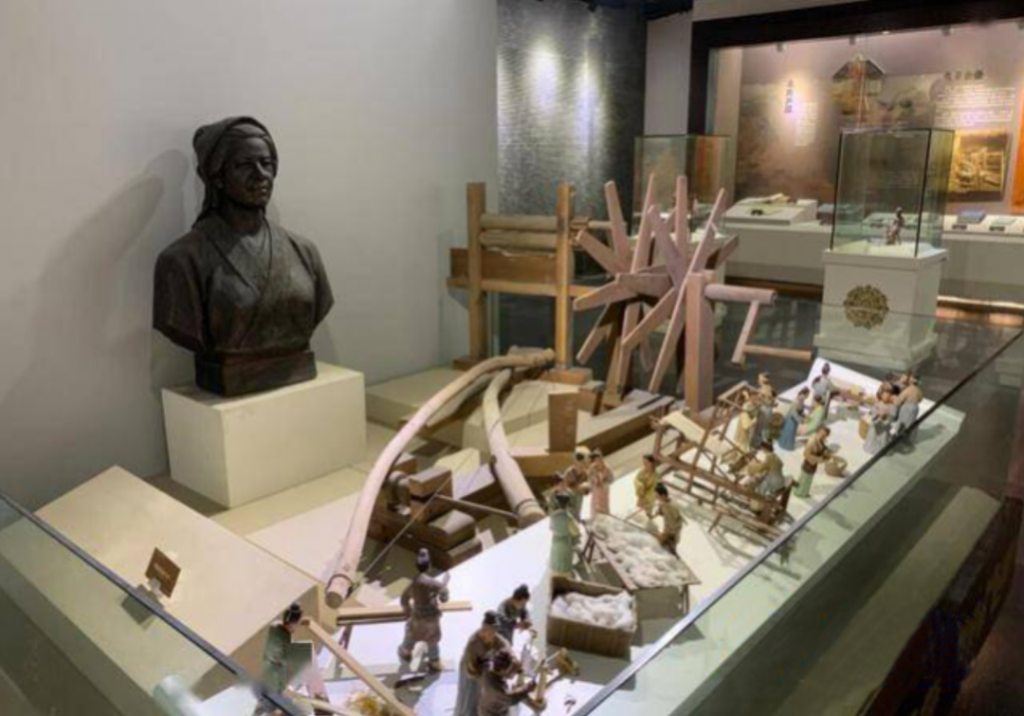 宋末元初著名棉紡織家、技術改革家黃道婆雕像和模型織機