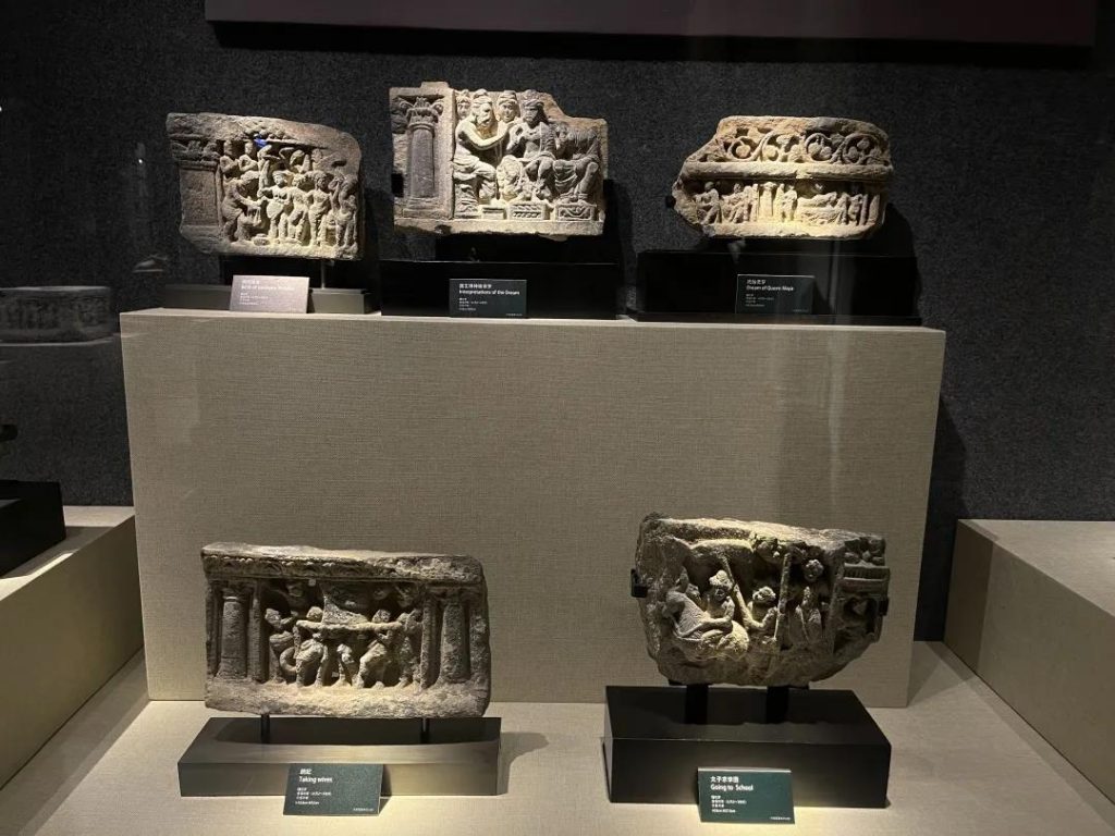 此次參觀,幸得梵亞藝術(shù)博物館館長(zhǎng)游卓凡先生親自講解。游館長(zhǎng)以博物館系統(tǒng)的收藏為基礎(chǔ),深入淺出地為我們講解展館里的一尊尊佛教藝術(shù)珍品。在貴霜時(shí)期藝術(shù)展廳,從佛陀的誕生——求學(xué)——宮廷生活——出家——修禪——說(shuō)法——涅槃的一生,采用了故事線的展示手段與講述方式,即便是以往不曾深入了解過(guò)的內(nèi)容,亦有十足的趣味與收獲。