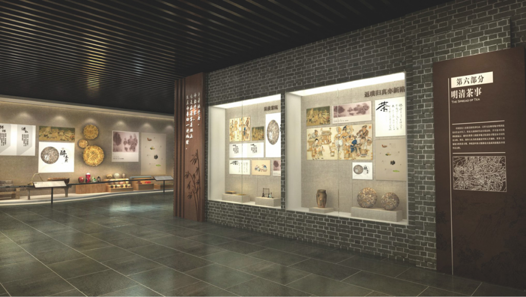 中國青磚茶博物館融合仿古建筑升級展覽;保留時代的建筑特色;讓觀眾在充滿歷史記憶的空間氛圍中得到準確的、合理的信息接收。 依托大綱、文物等信息,將具象的歷史元素(例如茶馬古道、斗茶與茶把戲等)體現在空間中,利用巧妙的藝術結構或特殊的材質運用還原歷史情景,讓觀眾沉浸在鮮明的歷史語境中了解中國青磚茶的歷史。